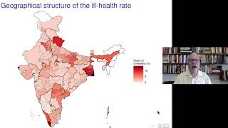 Results: The overall average ill health rate is 3.25%. The most important correlates are age, income and location. We find substantial variation across the 102 'homogeneous regions' of the country. Higher income is correlated with better health in 40% of India.
